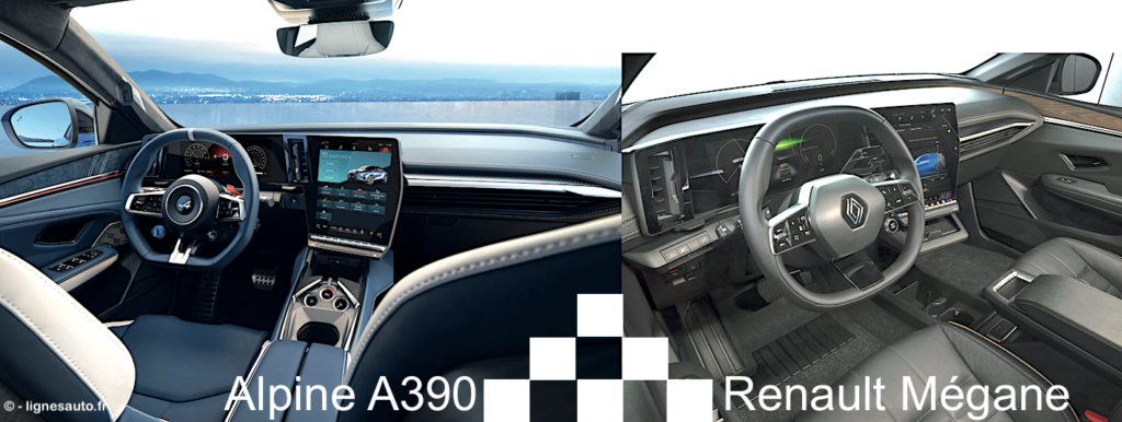 Pour le reste, question dimensions, l’Alpine A390 s’éloigne de la Renault Mégane E-TECH : 4,61 m de longueur contre 4,20 m à la Mégane, 1,88 m de largeur contre 1,76 m alors que la Mégane est plus basse (1,50 m contre 1,53 m à l’Alpine). Cette dernière prend sa revanche au niveau du volume du coffre : 532 l contre 440 à la Renault. Si un jour on m’avait dit que j’évoquerais le volume de coffre d’une Alpine dans un de mes sujets…