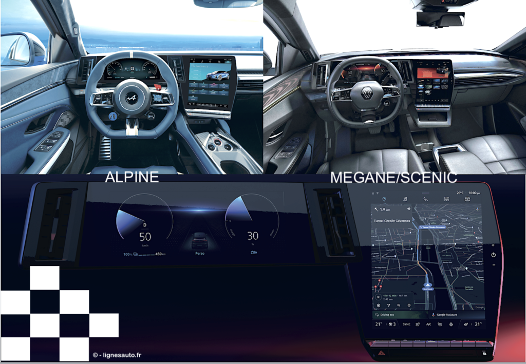Comme le confiait Laurens van den Acker à LIGNES/auto lorsqu’il a présenté la planche de bord de la Renault Mégane, l’écran en « L » appelé Open R « « est la résultante des travaux menés sur les concept-cars Trezor de 2016, SymbioZ de 2018 et Morphoz de 2020. » Imposer les aérateurs gauche et central intégrés dans cet écran en « L » – voir photo ci-dessus- n’a pas été facile : « c’est extrêmement complexe de les intégrer dans l’Open R et je dois dire que les ingénieurs se sont un peu arraché les cheveux, mais ils ont joué le jeu et nous ont suivis ! » Laurens van den Acker précisait alors que « ce concept peut être facilement implanté sur d’autres modèles » Exact : l’Alpine A390 en profite aujourd’hui.