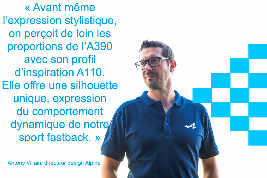 Et Philippe Krief ajoute à ce propos que « l’A390 est notre deuxième véhicule du Dream Garage qui veut aller conquérir un nouveau marché puisque c’est un Sport Fastback . C’est une voiture de course dans un costume de soirée. Nous célébrons cette année les 70 ans de la marque, mais tout Alpine est dédié à ce qu’il va se passer dans les sept prochaines années. Elles vont nous permettre de positionner Alpine dans le gotha des marques automobiles et de faire d’Alpine l’Étoile française dans ce domaine. »