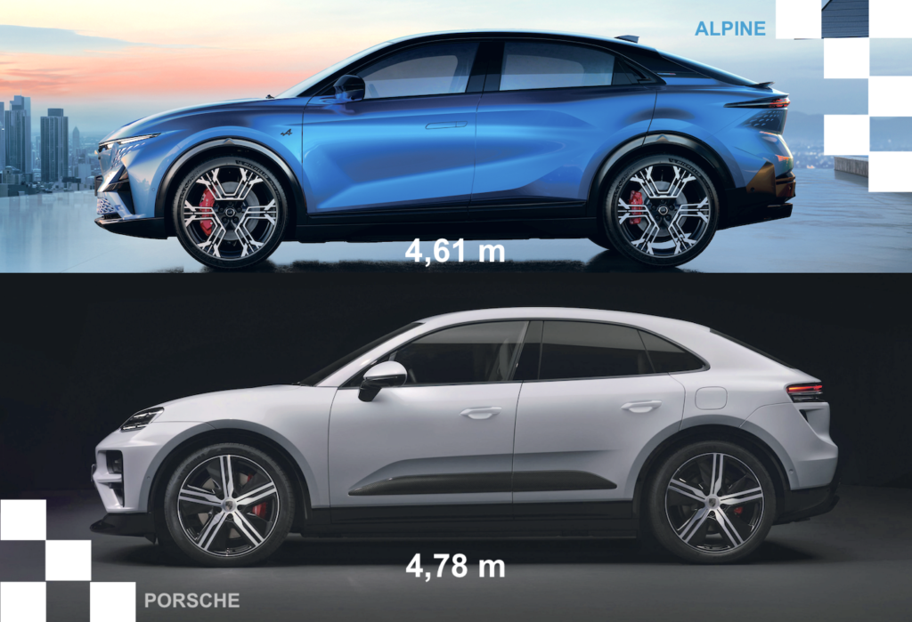 Ce chiffre est toutefois à mettre à l’avantage de la Française car l’Alpine est une quatre roues motrices et que dans le cas de la Macan 4 à transmission intégrale, le poids de l’Allemande grimpe à 2330 kg. Certes, la Porsche est d’un gabarit plus généreux de 4,78 m de longueur à comparer aux 4,61 m de l’Alpine.