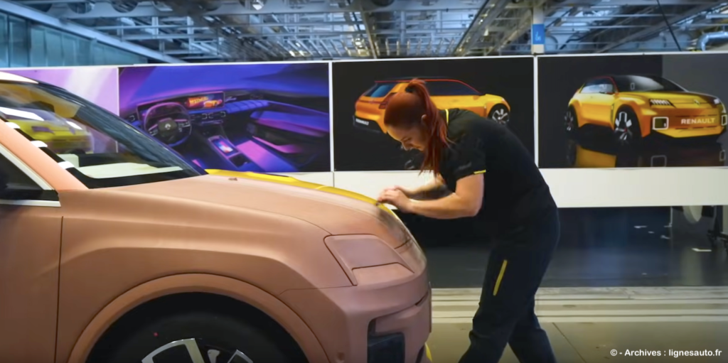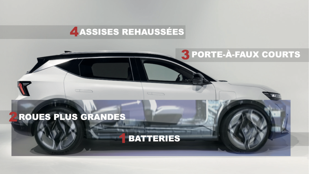 But let’s get back to our platforms and the silhouettes designed by designers to dress them up. In 2025, when we hear this term, we often think of a 100% electric platform (above, the Renault Scénic). Has it become the Holy Grail for designers freed from heavy constraints with its flat floor and reduced overhangs? Not necessarily, according to Gilles le Borgne. “Obviously, the overhangs are contained, but the problem designers face is that with the battery pack between the front and rear axles, you end up with an extremely long wheelbase and a “dachshund” effect that needs to be avoided. Then there’s the wheel diameter/height ratio, which has to be handled carefully because the battery raises the floor and can therefore increase the height of the car.” Below, the 100% EV platform of the new Alpine A390 crossover in the Dieppe factory.
