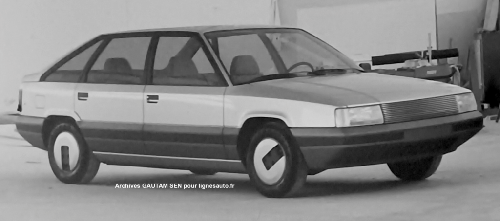 « On savait que c’était un véhicule de milieu de gamme et qu’il devait ne pas choquer, être dans la tradition des tricorps. » Mais des projets plus audacieux avaient été proposés en interne. « Oui, et il y avait même eu de très belles maquettes (ci-dessous celle de Michel Jardin) qui ont toujours été mal perçues dans les test-clientèles. Personnellement je ne suis pas du tout satisfait du choix final. Il y avait une partie du Produit et moi-même qui n’étions pas d’accord avec les objectifs. Nous pensions à la Renault 16, véritable succès de la Régie et nous imaginions que le futur milieu de gamme Renault devait être créatif et non jouer la tradition. Il devait être novateur et s’inspirer de l’état d’esprit dans lequel avait été créée la Renault 16. Nous avions fait dans cette logique de belles maquettes mais qui dans les tests n’avaient pas apporté de résultats satisfaisants, donnant raison à ceux qui voulaient la tradition. »