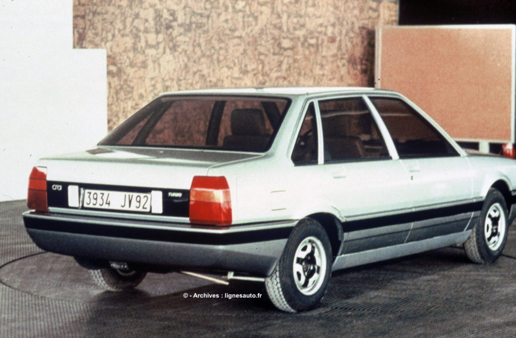 La maquette de Giugiaro est donc retenue pour le projet X48 de la Renault 21. Robert Opron explique dans le Bonus à la fin de ce post pour quelles raisons. Retenue, mais à deux détails près. Détails qui n’en sont pas sur deux plans : industriel, avec l’imposition par l’ingénierie des portes autoclaves, non présentes sur la maquette italienne, et l’autre sur le plan du pur design avec la refonte de la découpe du coffre de malle pour élargir visuellement la voiture, en plus de feux horizontaux (ci-dessous).