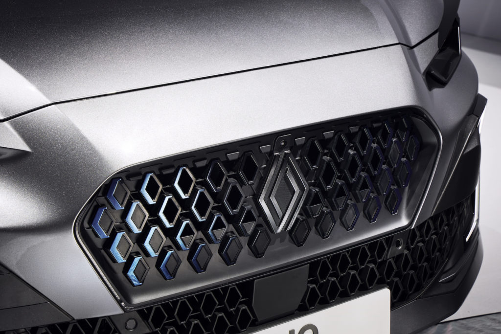 The grille is beautifully enhanced by the sculpting of the hood, “which pushes the grille down,” says Laurens… And what a front end: I counted no fewer than 40 interlocking diamonds in this new grille, not counting the logo. Well, the restyled Austral gave us a heads-up with its 46 diamonds integrated into the grille!