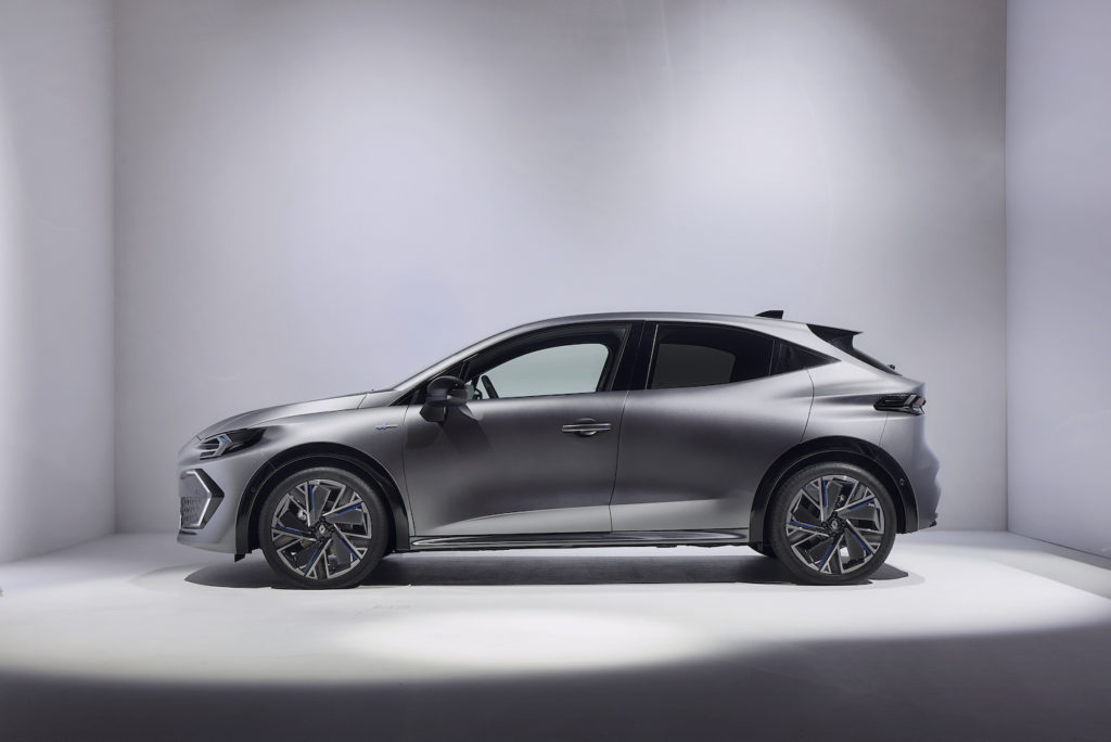 The rear door handles are still concealed, but the triangle that follows the dynamic rise of the window line extends to the end of the side panel. This is in stark contrast to the perceived solidity of a VW Golf, whose design is based on a very thick quarter panel in this area. On the other hand, the upper line of the window slopes down rapidly in this area, while the roofline remains slender and more horizontal to preserve headroom inside.