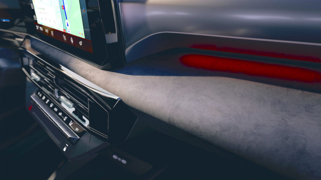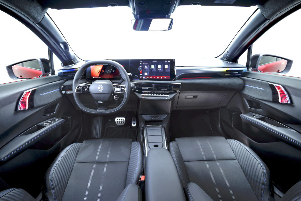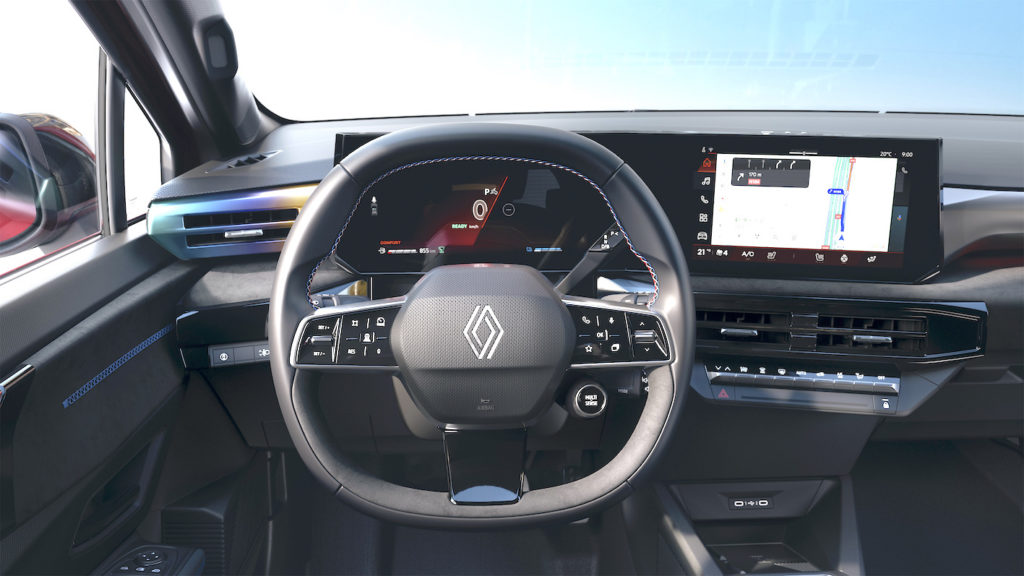On board, it’s a revolution, as the classic dashboard architecture with the instrument cluster/visor facing the driver has been replaced by a horizontal layout, flanked by the double V-shaped OpenR screen and the OpenR Link multimedia system with integrated Google, which is a first in this vehicle category. The aesthetic theme is similar to that of Renault’s electric vehicles (4 and 5).