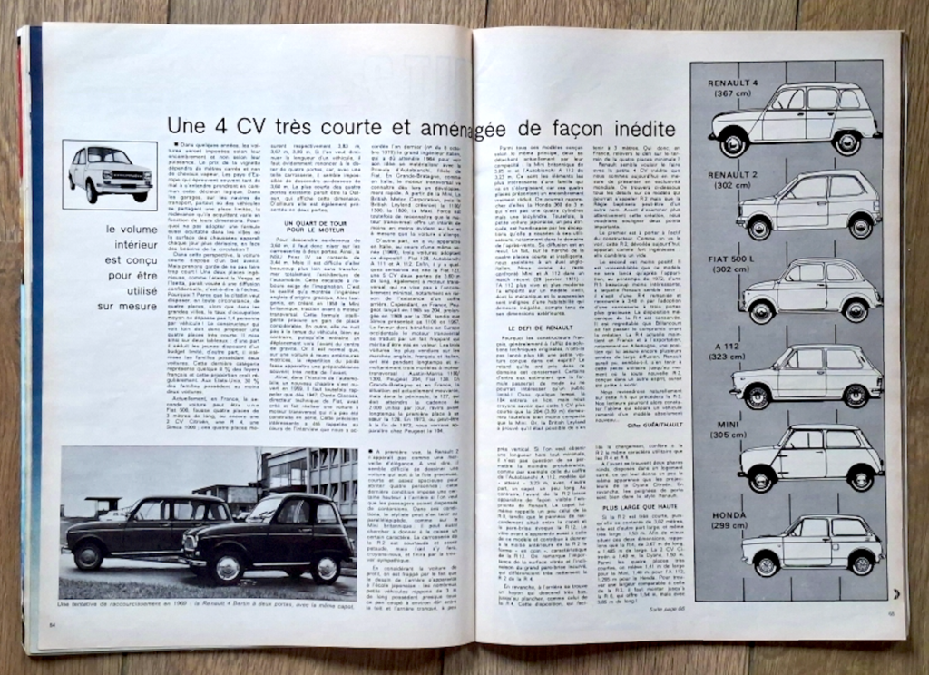La Renault 14 qui sortira en 1976 est pratiquement figée au niveau du style en 1971 alors que de son côté, l’auto-journal dévoile la R2. Mais ça, évidemment, les journalistes ne le savent pas encore. Gilles Guérithault semble plutôt obnubilé par la Mini (voir ci-dessous l’extrait du sujet de 1971) et met Renault devant ses incohérences : il n’existe pas dans la gamme de Renault capable de concurrencer la Mini, alors que le constructeur nationalisé est connu justement pour ses succès sur le marché des petites voitures.