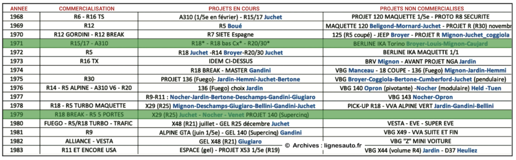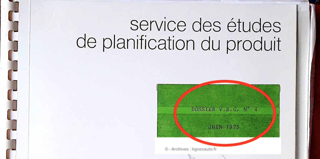 Et c’est ici que l’énigme apparaît car Renault a travaillé sur cette architecture qui se retrouvera à bord des premières maquettes du projet VBG (Véhicule Bas de Gamme). Alors me direz-vous, Gilles Guérithault était très bien informé ? Oui, comme toujours, mais il y a un problème de taille : le sujet de l’auto-journal date de 1971. Or, les premières études de modularité pour les VBG de Renault n’ont débuté qu’en juin 1975, comme on le voit ci-dessous avec le dossier d’étude.