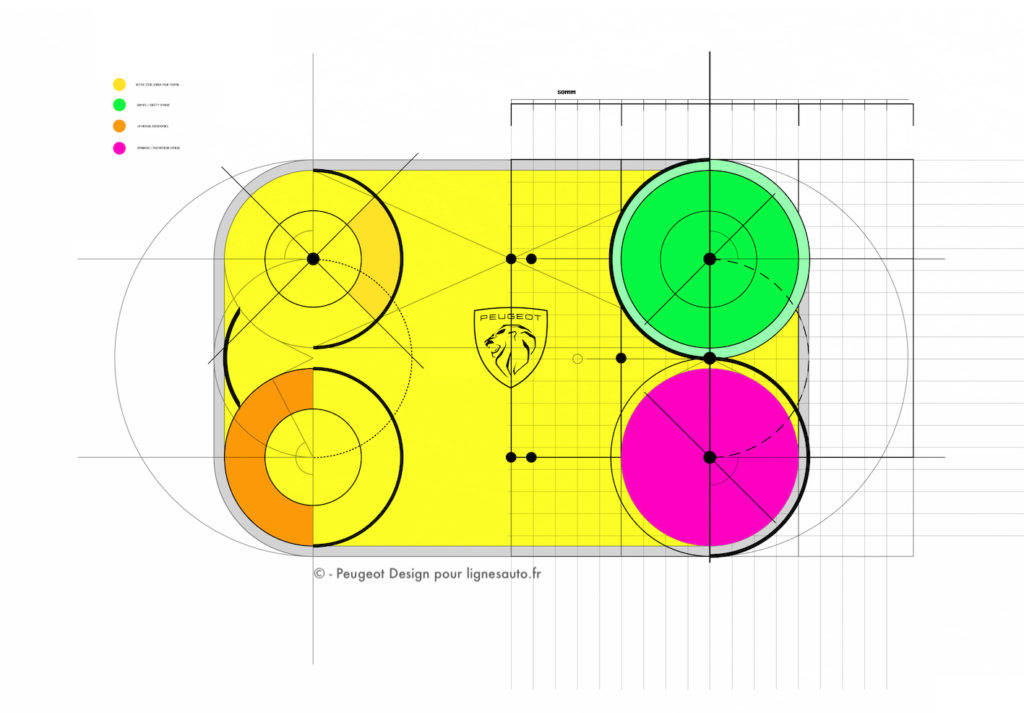 This architecture steer by wire will enable the Polygon concept – and the future Peugeot 208/2008 – to benefit from a brand new generation of revolutionary i-Cockpit®, featuring a ‘new driving control’, a “steering wheel” that can no longer really be called that, as it is rectangular. It resembles a (thick) tablet and has four round holes in which you can control functions with a simple movement of your thumbs.