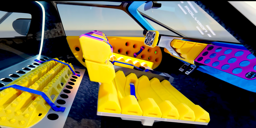 Polygon annonce avant-tout le prochain volant Hypersquare et met en exergue la recherche vers une durabilité pensée jusque dans la fabrication de la voiture de demain, comme ses sièges conçus avec très peu de pièces et personnalisables à souhait. Ils « associent une coque imprimée en 3D et une mousse moulée d’une seule pièce. Elle offre la liberté de créer des formes inédites et confortables et un design géométrique et net que les sièges traditionnels recouverts de tissu ne peuvent pas offrir. »