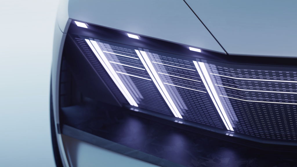 Raison pour laquelle il est intéressant de relire notre sujet publié voici peu sur ce site (https://lignesauto.fr/?p=43258). De Fractal, on ne retiendra que l’embouti en forme de triangle vu sur la 2008. Du manifeste Instinct, on retiendra cette calandre presque pleine et les deux griffes déchirant le soft-nose. De l’Inception, on ne sait pas encore quel détail de style aura été retenu pour le futur. Mais l’Hypersquare a été défriché sur ce concept. Visiblement, la calandre d’Inception promise sur toute la gamme ci-dessous est passée à la trappe !
